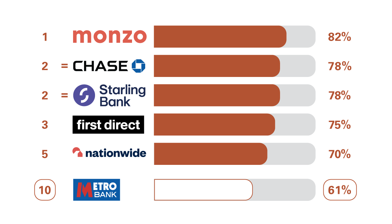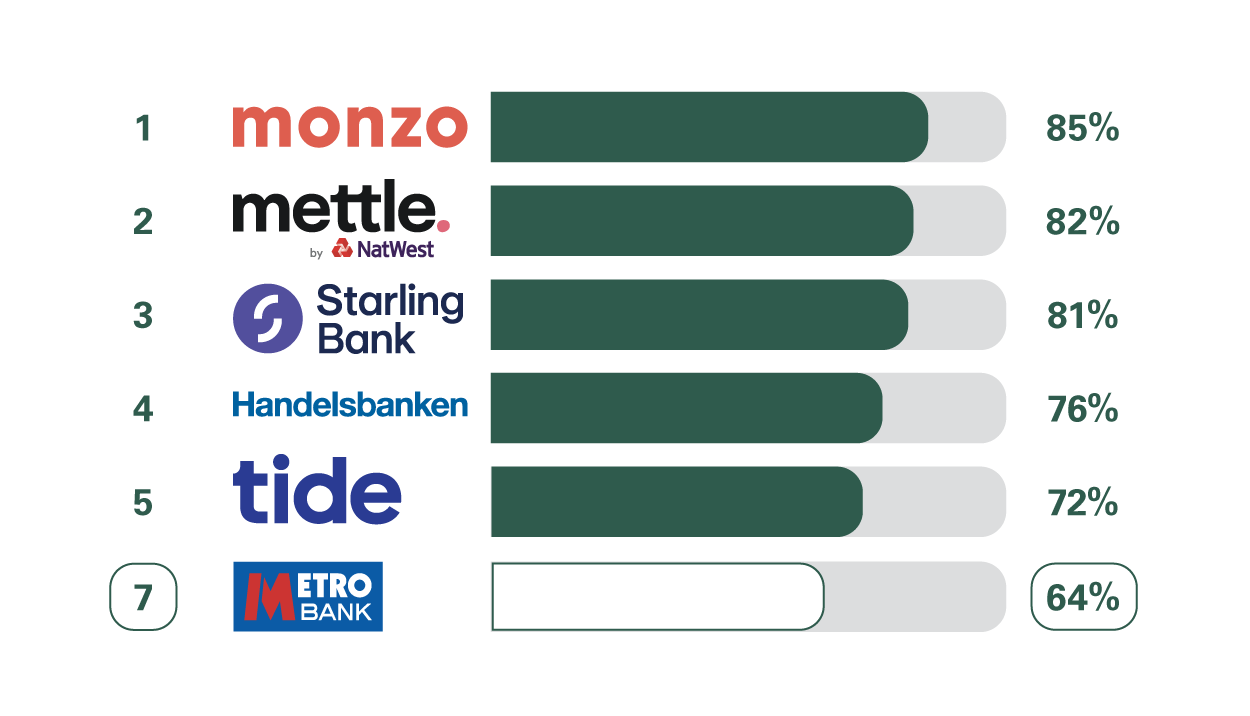 As part of a regulatory requirement, an independent survey was conducted to ask approximately 1000 customers of each of the 17 largest personal current account providers if they would recommend their provider to friends and family. The results represent the view of customers who took part in the survey.